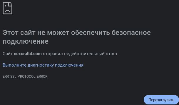 Однако в ходе сбора информации произошел казус — сайт биржи не работает. Как только наша редакция перешла по ссылке, она получила предупреждение про отключенный доступ. Если быть точнее, то алгоритм оповестил нас, что платформа Nexora — «Этот сайт не может обеспечить безопасное подключение. Сайт nexoraltd.com отправил недействительный ответ».