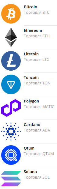 Для торговли доступны около 10 криптовалют, в том числе BTC, ETH, LTC, TON и другие. Выбор инструментов очень скудный, это огромный недостаток робота.