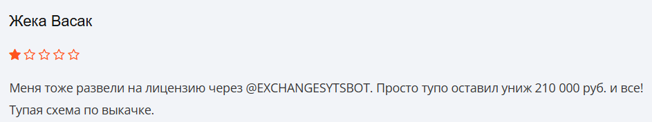 - Клиенты в своих отзывах о Exchangesytsbot жалуются на то, что скамеры похищают их деньги.