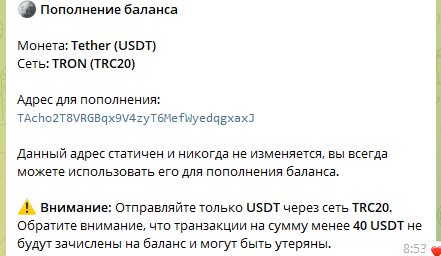 Если трейдер желает пополнить счет с помощью карты, владелец сервиса предлагает ему «обратиться в техническую поддержку» за реквизитами, написав незнакомому человеку в телеграм-чат. Скорее всего, мошенник предоставит клиенту «одноразовую» карту «дропа». Вернуть подобную транзакцию крайне сложно.