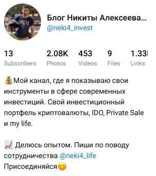 Анализ телеграм-канала о крипте Никиты Алексеева: содержание блога DeFi IDO NFT P2P Инвестиции, репутация и отзывы о криптовалюте с Neki4 Invest