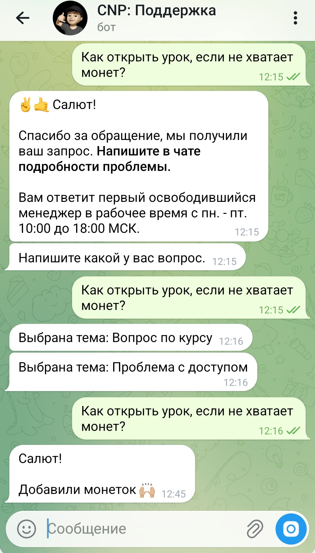 Доступно свыше 15 мини-курсов. Их стоимость варьируется от 2900 до 12000 монет. Если средств для открытия видеоурока не хватает, можно попросить службу техподдержки пополнить счет.
