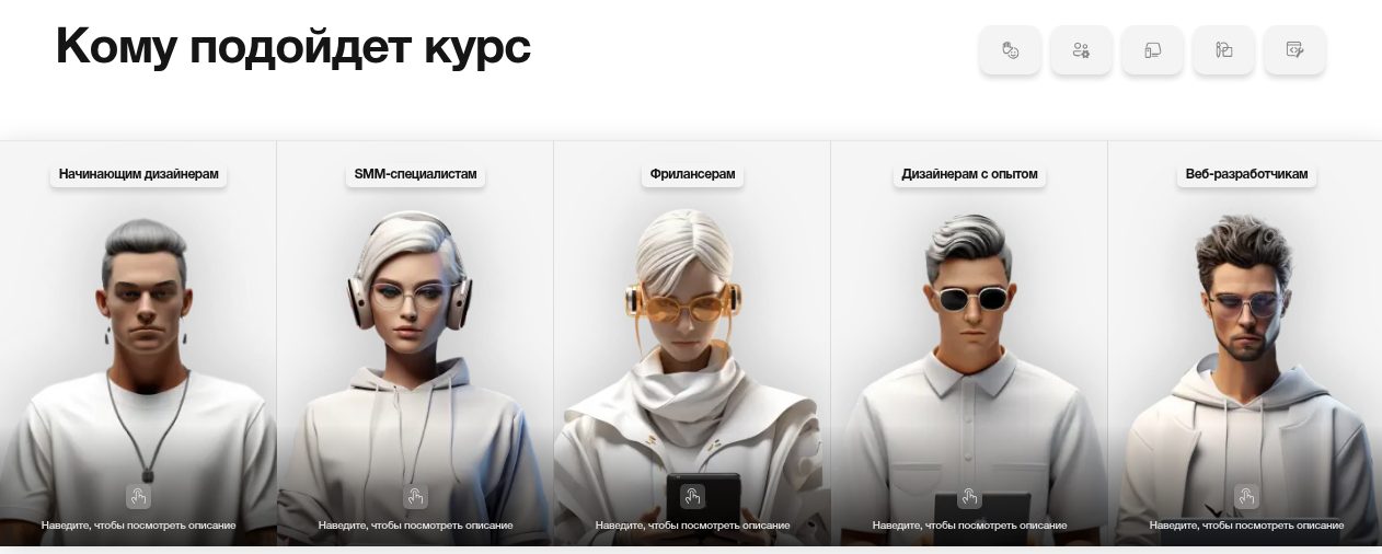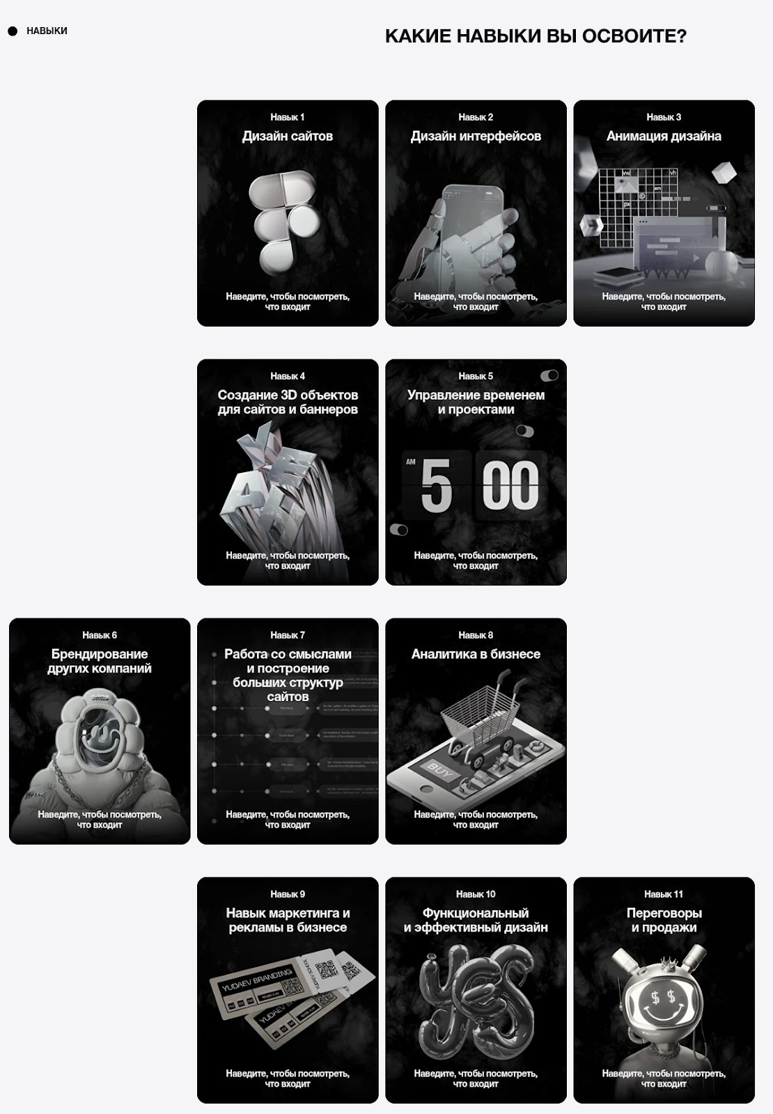 Среди инструментов, которым учат на курсе, — Figma, Photoshop, Illustrator, After Effects, Trello, Notion и Miro. Набор достаточно широкий. По итогам обучения студент должен получить портфолио из 20+ кейсов, диплом и доступ к карьерной поддержке.