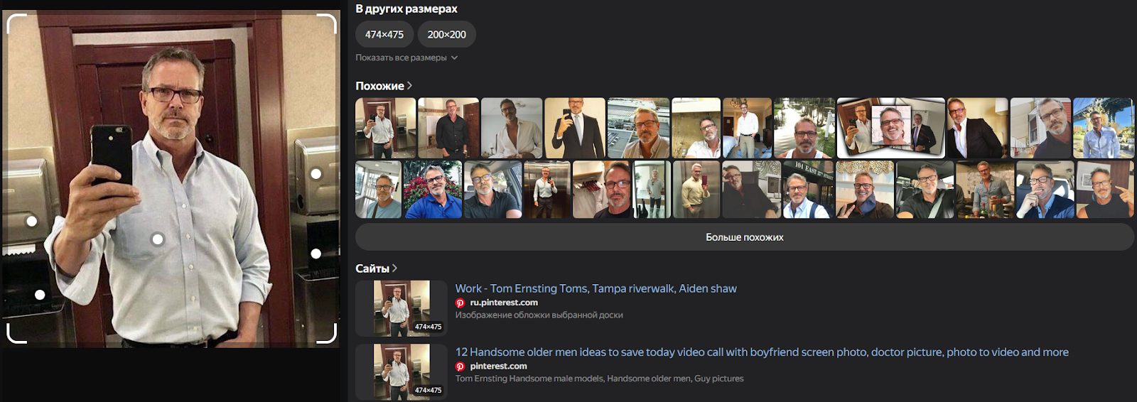 - фейковые фото профиля Николая, скачанные из Pinterest.