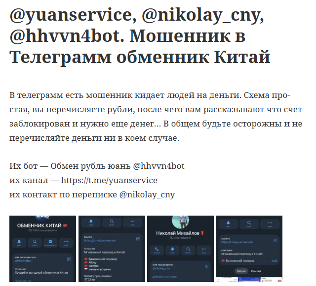 Обзор обменника пользователя Nikolay CNY: отзывы реальных пользователей, можно ли доверять проекту Hhvvn4Bot