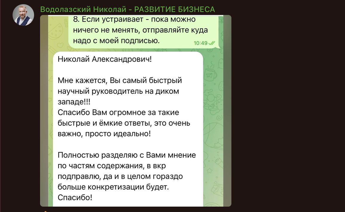 - Отзывов о его работе почти нет. Из найденного — хвалебные сообщения в телеграм-канале. Слишком короткие, без подробностей, будто под копирку.
