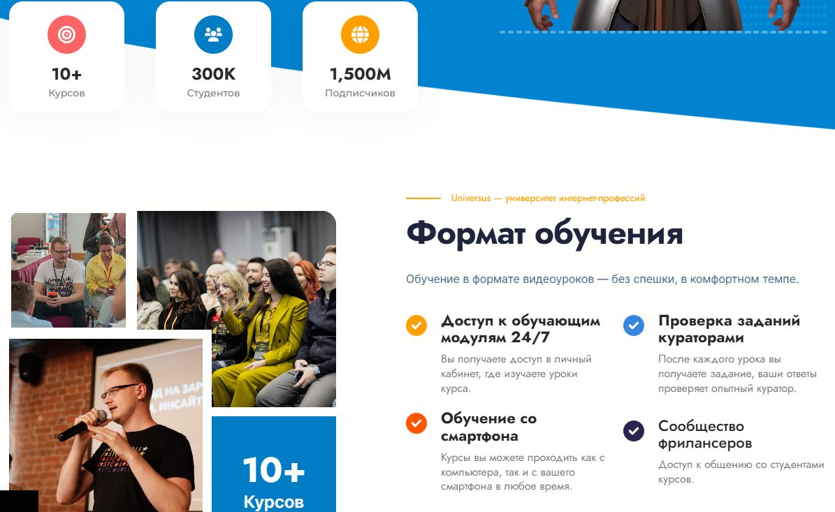 За последний год университет Universus выпустил свыше 300000 учеников и 70% из них трудоустроились и начали хорошо зарабатывать уже в 1 месяц. Пользуется популярностью якобы не только в России, но и в Казахстане, Беларуси и Индонезии.