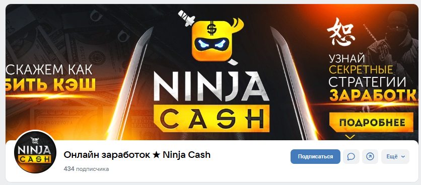 Исходя из реальных отзывов о Ninja Cash, проект появился во «ВКонтакте», а в январе 2026 года на него подписано 434 человека. В описании группы сказано, что она создана энтузиастами, которые хотят помочь подписчикам заработать и проверяют все схемы на себе.