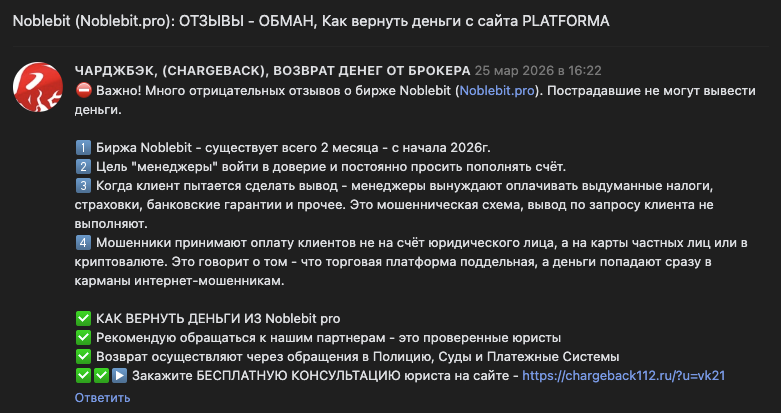 Отзывы о площадке https noblebit pro