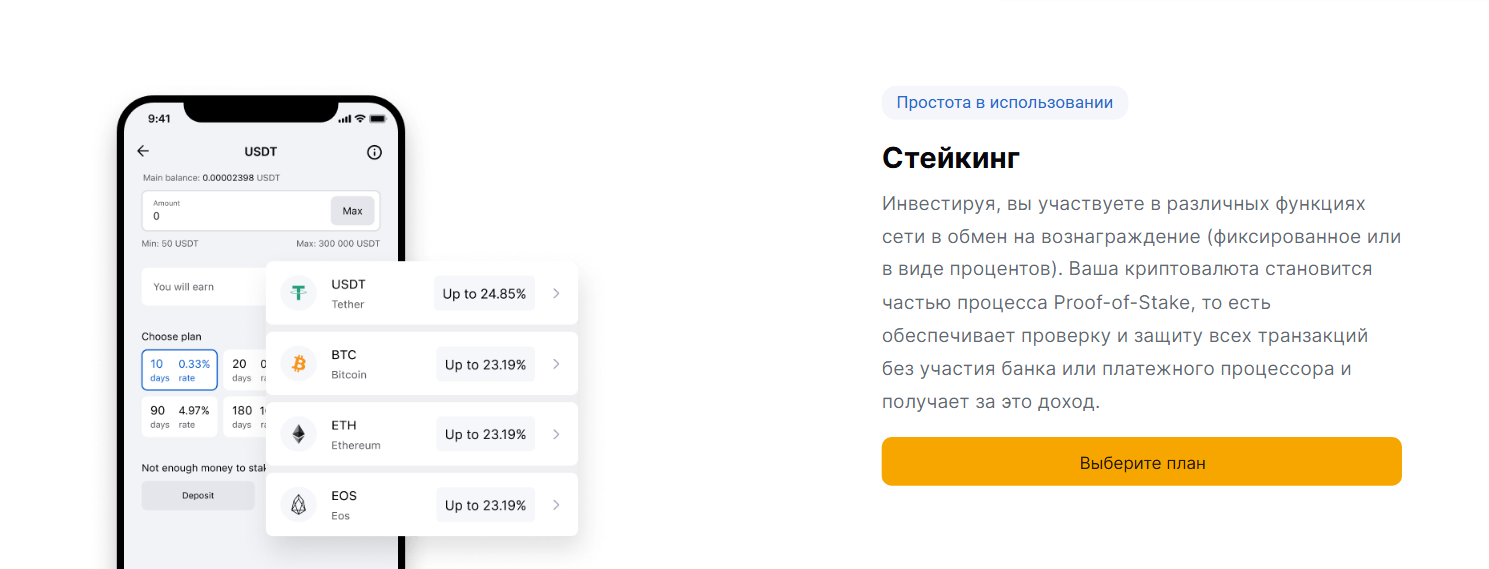 Также среди функций биржи Nodexvalley есть стейкинг цифровых монет. Подробности открыто не раскрываются. Необходимо зарегистрироваться на сайте, чтобы узнать их.