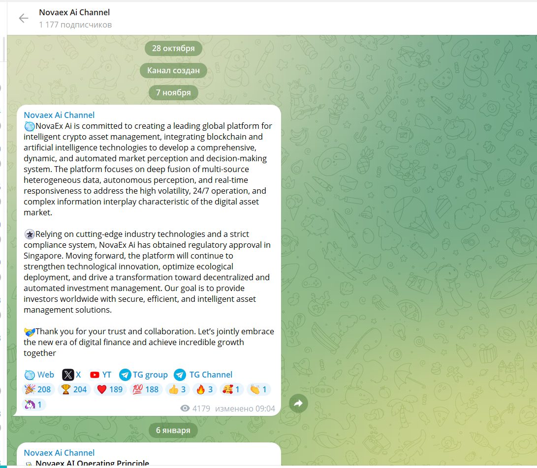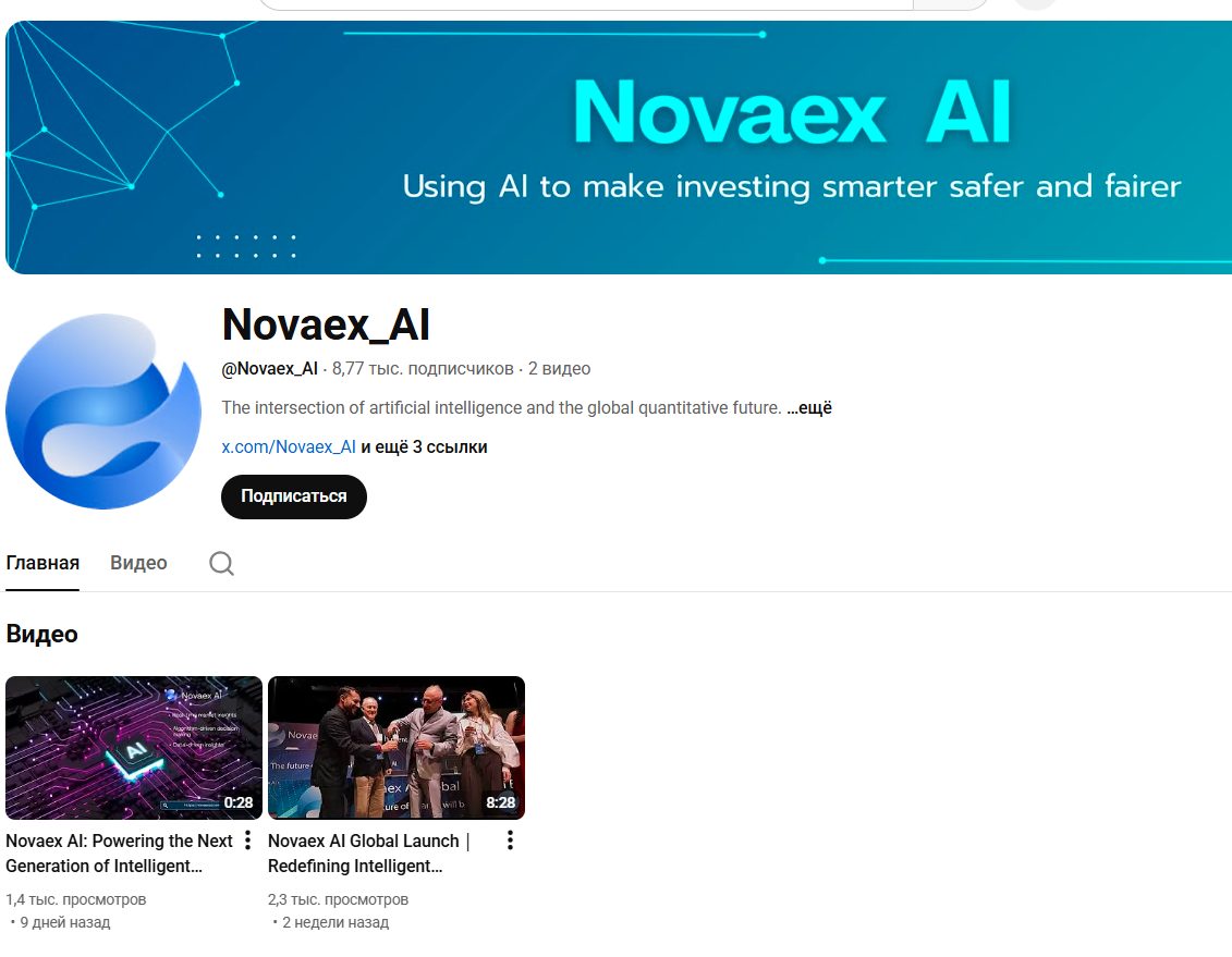 Novaex AI — крипто-платформа на 15 языках, где пользователям предлагают заработок на автоматическом трейдинге с помощью искусственного интеллекта, количественных стратегий и подключения к крупным крипто-биржам через API.