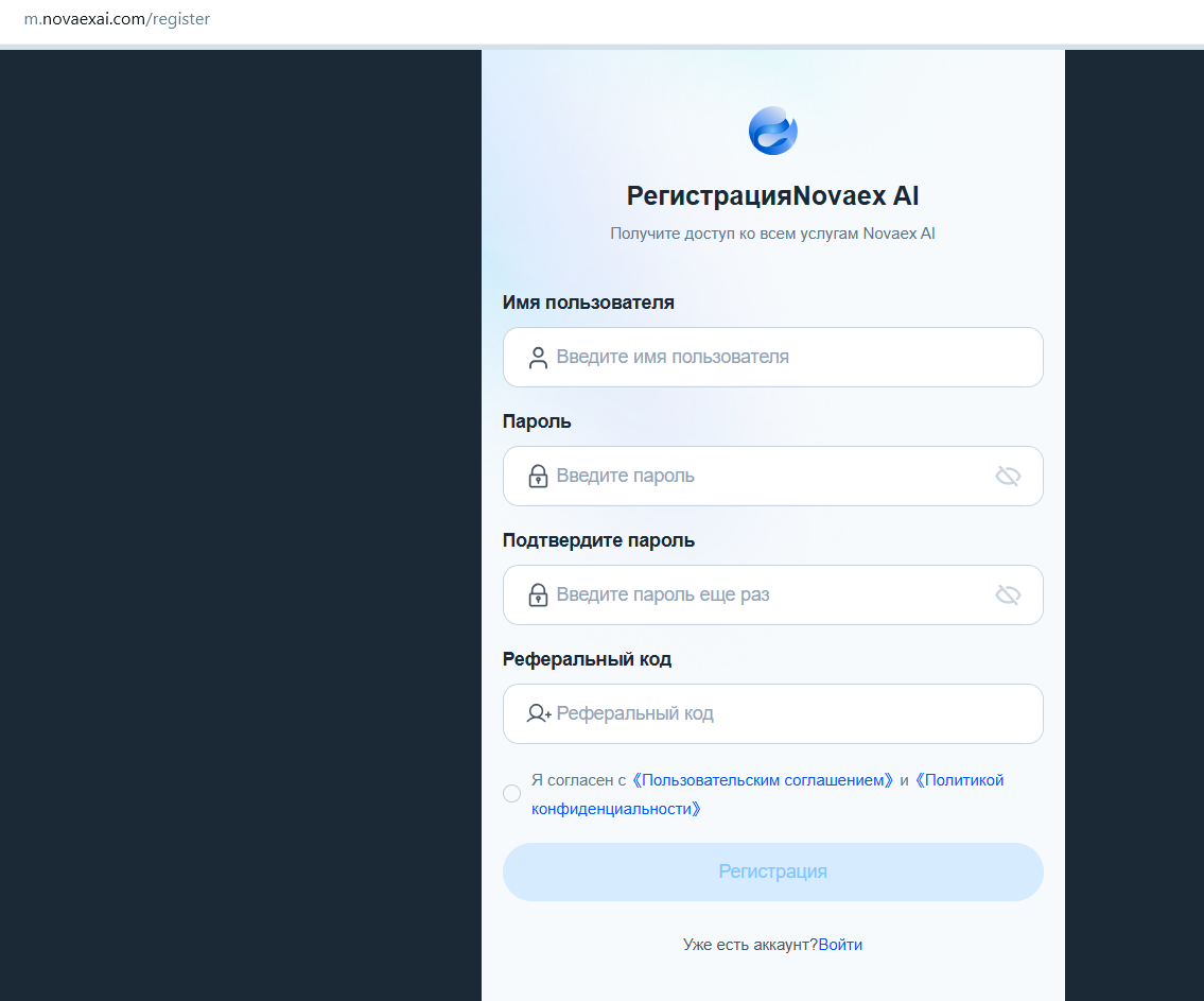 Монетизация проекта напрямую не раскрыта и на чем в компании Novaex ai заработок строится — не до конца ясно. На сайте нет открытых тарифов, цен, комиссий или условий участия. Предполагается регистрация через отдельный домен mnovaexaicomregister и дальнейшее вовлечение пользователя уже внутри платформы.