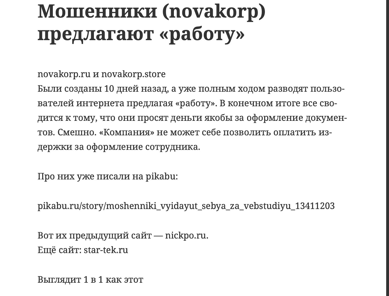 Наличие сайтов-копий nickpo ru и star-tek ru говорит о масштабируемой модели, а не об уникальном предложении на рынке труда. К сожалению, отсутствие проверенной информации о легальном статусе и реальных благодарных сотрудников делает сотрудничество с проектом Novakorp Store и Novakorp Ru крайне рискованным.