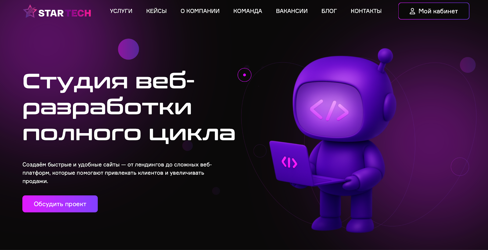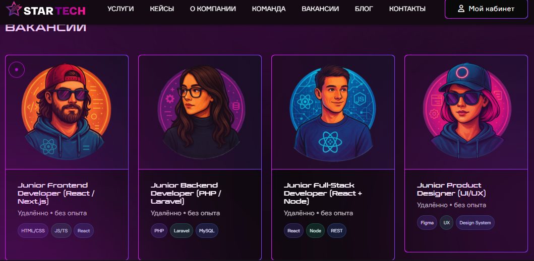 - Прозрачность процесса. На сайте описаны этапы работы над проектами.