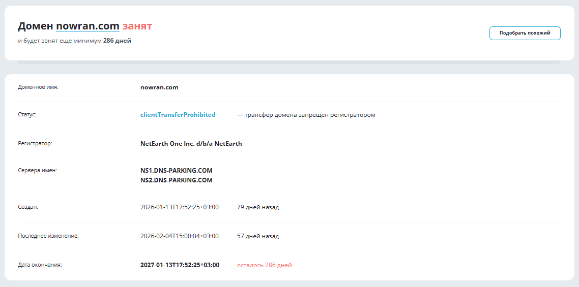 К тому же домен Nowran com появился только в январе 2026 года и на момент подготовки обзора (март 2026-го) используется на протяжении 79 дней. В интернете нет никаких ярких следов этой организации, поэтому о ней практически ничего неизвестно и речь идет о новом проекте без репутации.
