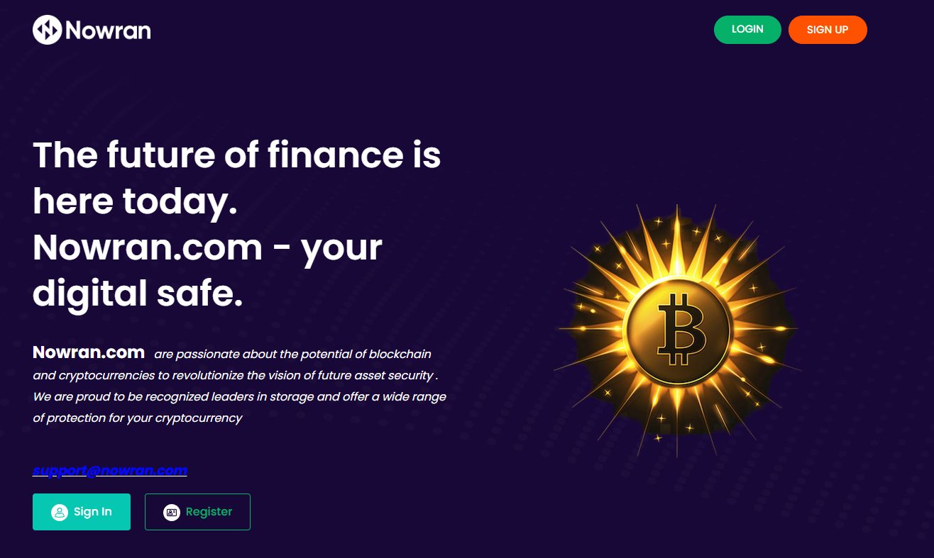 Nowran com – это криптовалютный кошелек, позиционируемый создателями как «цифровой сейф» для хранения и оборота активов. Утверждается, что речь идет о нью-йоркской компании, обеспечивающей надежность операций, но мы в этом сильно сомневаемся.