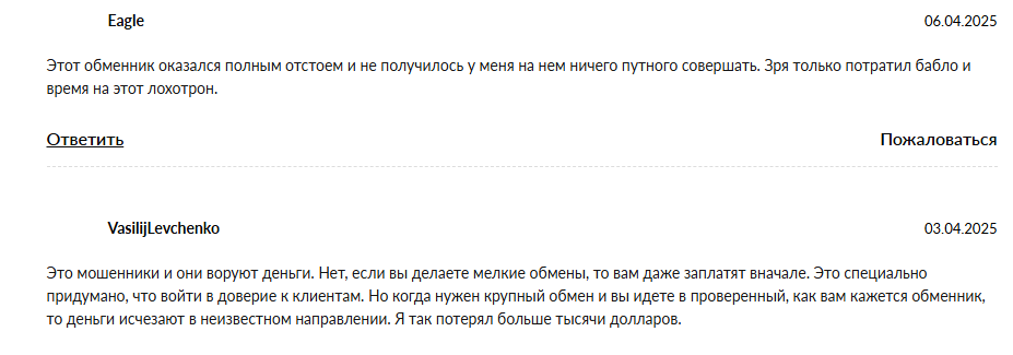 Отзывы о сервисе преимущественно отрицательные. Пользователи указывают на проблемы с выполнением обменов и взаимодействием с поддержкой.