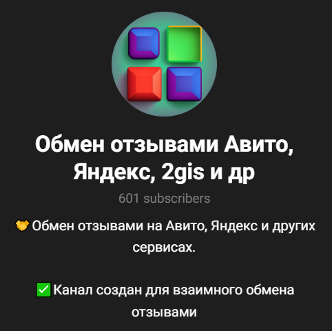 Рассмотрим, что собой представляет канал Обмен отзывами Авито, Яндекс 2gis и др и будет ли он полезен продавцам на этих площадках.