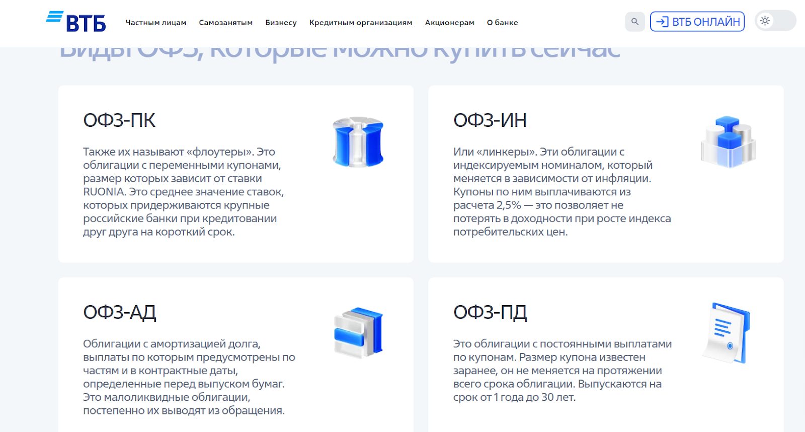 Облигации федерального займа бывают следующих видов: