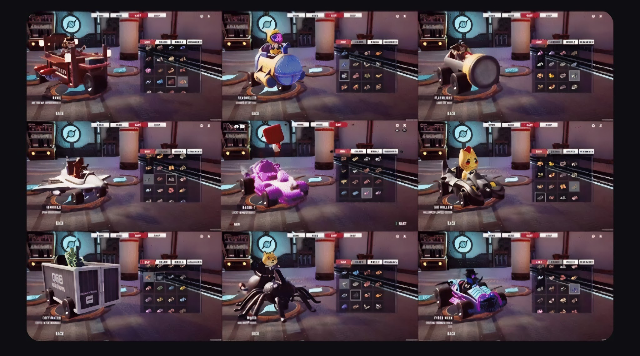 - Testing Room. Это тренировочный режим. Подходит для новичков. Позволяет изучать персонажей, отрабатывать дрифт, тестировать способности и улучшать навыки управления.