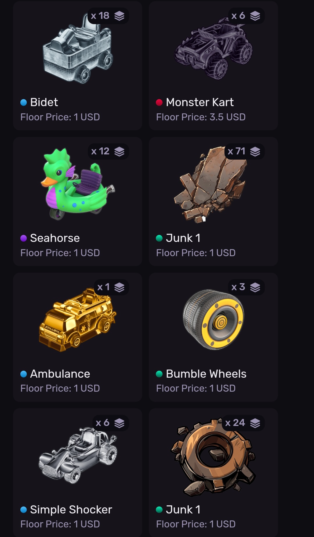 В игровом приложении есть магазин. В нем можно приобрести карт, шины, защитные очки. Стоимость варьируется от 1 до 3,5 долларов.