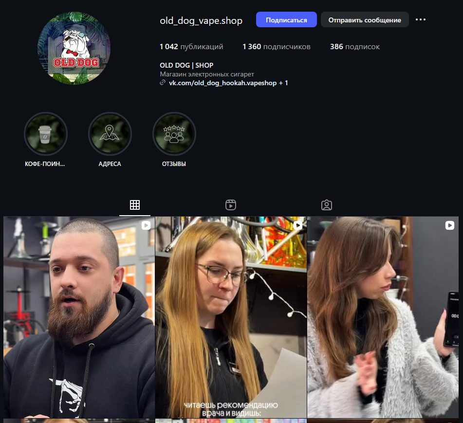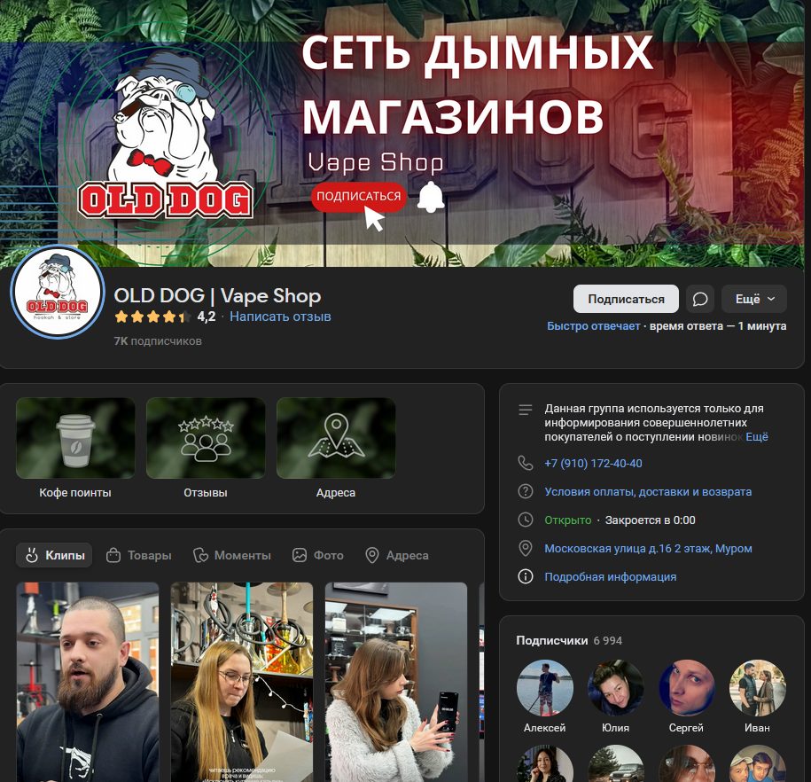 Как говорилось ранее, OLD DOG — это сеть магазинов, а именно вейп-шопов. И на некоторых точках под данным брендом также работают кальянные заведения. Запустился бренд примерно в 2015 году, по крайней мере с этого времени ведется его группа во ВКонтакте.