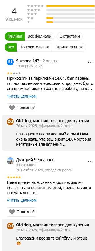• изредка в отзывах на OLD DOG Vapeshop встречаются претензии по поводу качества товара и его сертификации.
