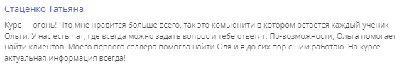 Отзывы о проекте по обучению работе с маркетплейсами Ольги Кудряшовой