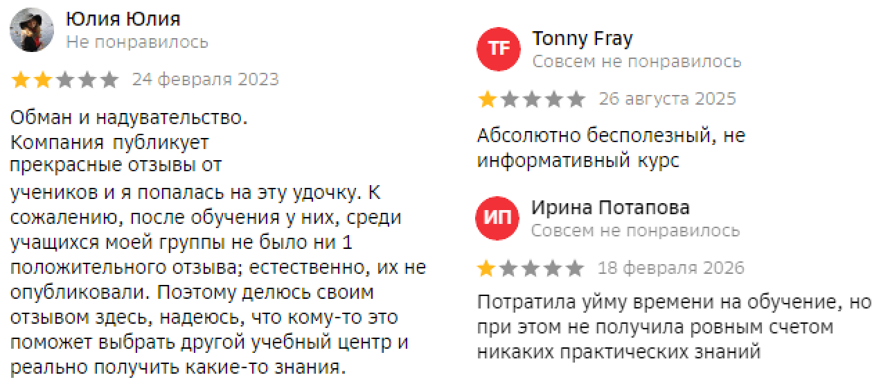 - положительные отзывы студентов написаны за деньги и признаками достоверности не обладают;