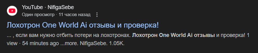 • отзывы о One World Ai предупреждают о вероятном мошенничестве;