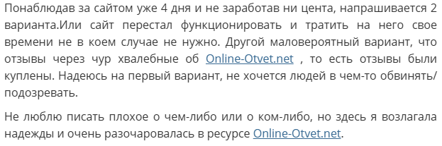 В интернете много отзывов о заработке на Online-otvet ru, чаще они негативные. Пользователи жалуются, что оплачиваемых вопросов было мало, а платили за работу копейки.