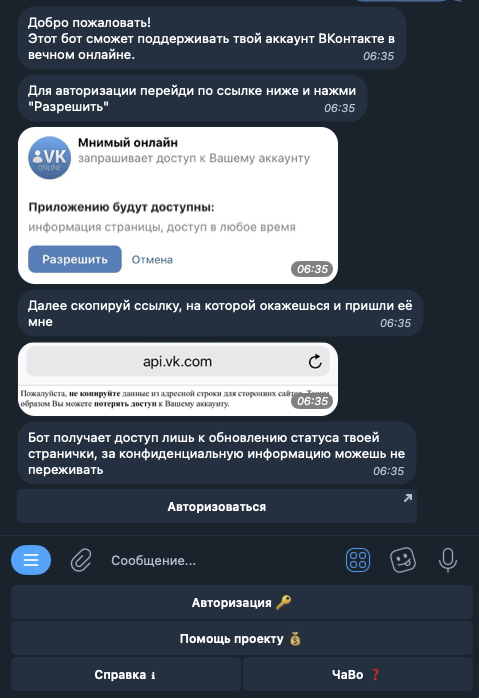 Создатель бота OnlineVK Bot обещает предоставить инструмент для поддержания статуса ВК-страницы в состоянии «онлайн». Наша редакция проанализировала его предложение и сам продукт. В результате мы выяснили, насколько безопасно пользоваться данным сервисом.