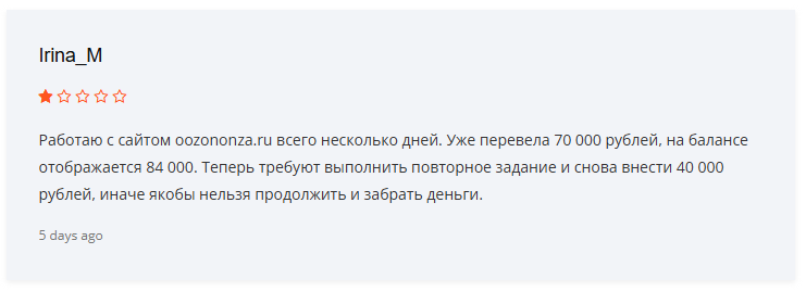 Отзывы о Oozononza ru