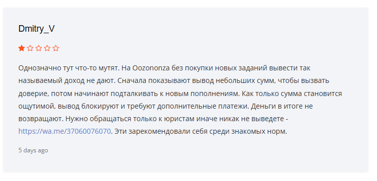 По итогу репутация у площадки отрицательная. Положительных комментариев в сети нет, а независимые обозреватели указывают на риск сотрудничества с «Оозононза» и ставят низкие оценки.