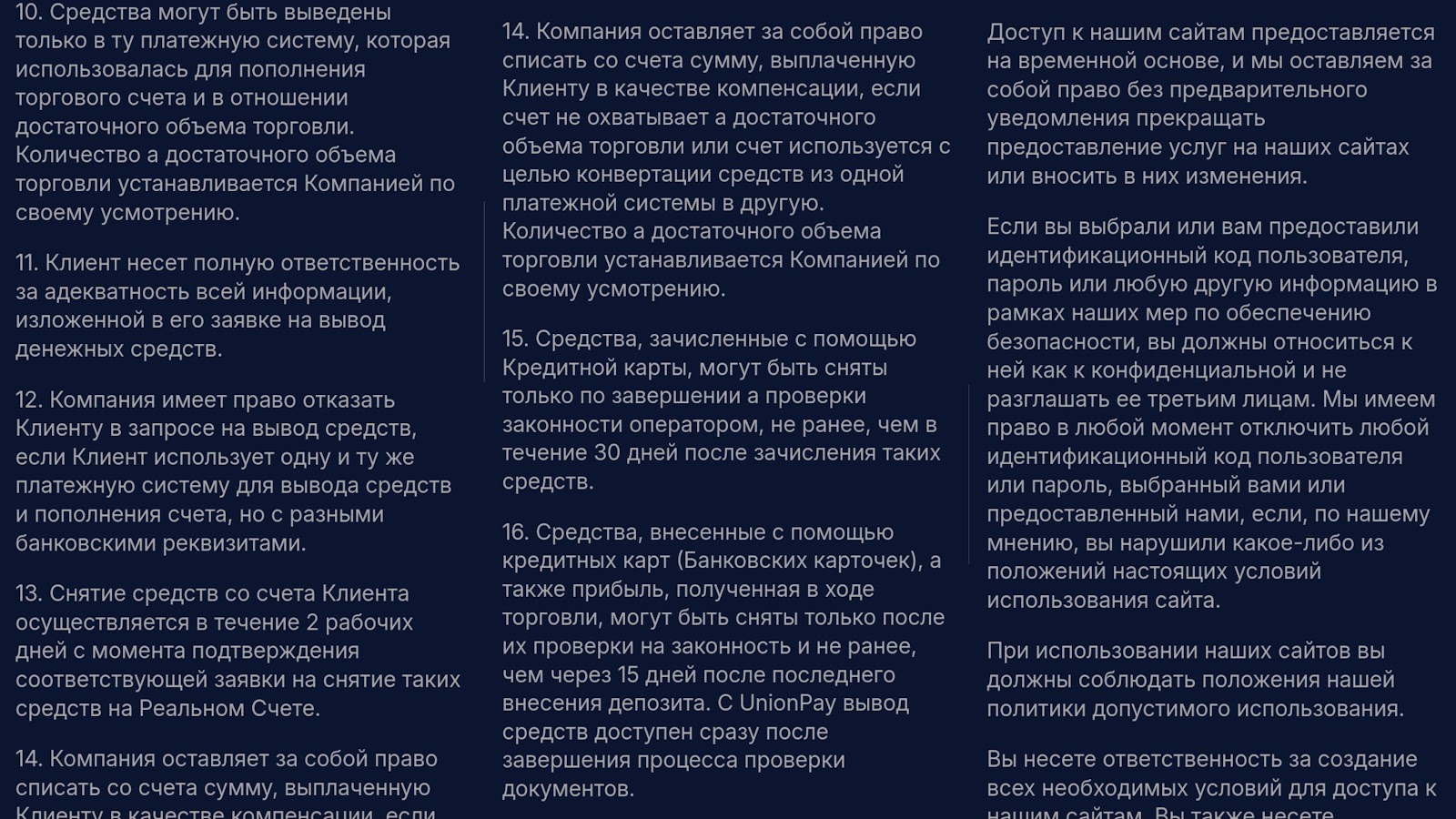 После этого нужно согласиться с условиями и политикой брокера. Исходя из правил работы, администрация может требовать проверку личности клиента с помощью документов. Также может проверять кредитную и банковскую историю. Подробности о данной процедуре отсутствуют.
