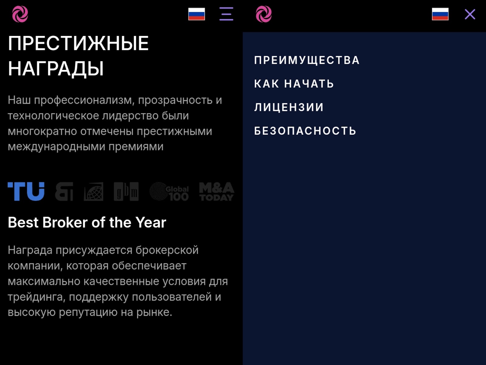 Проект работает через сайт opalmoonretreat net, но компания также предоставляла услуги через веб-ресурсы opalmoon retreat co, oplmoon rtt world и прочие. Оформление площадок было идентичное. Настроить интерфейс платформы посредника можно на несколько языков, в число которых входит русский. Из категорий есть: “Преимущества”, “Как начать” и другие.