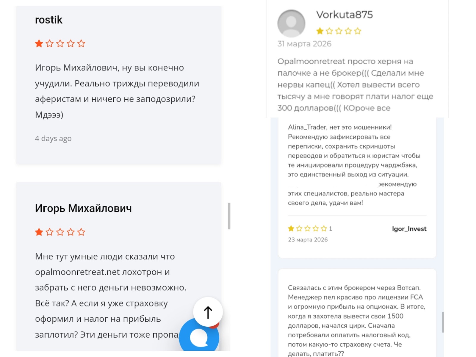 На независимых ресурсах есть отзывы о том, что Opalmoonretreat принадлежит мошенникам, которые не разрешают выводить прибыль.