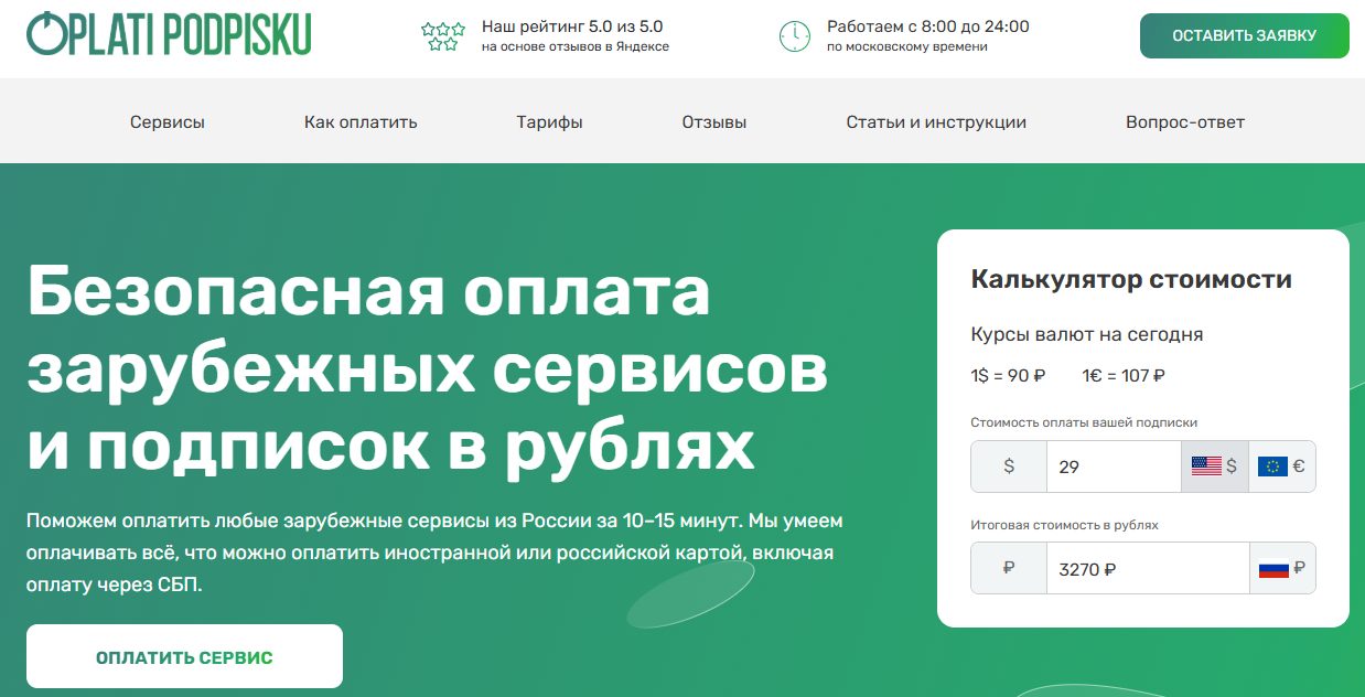 Оплати Подписку ру — сервис для оплаты иностранных сервисов, рассчитанный на публику из России. Его владельцы якобы решили устранить проблему с недоступностью международных переводов для держателей российских карт. Рассмотрим, как работает Oplati Podpisku ru и стоит ли ему доверять.