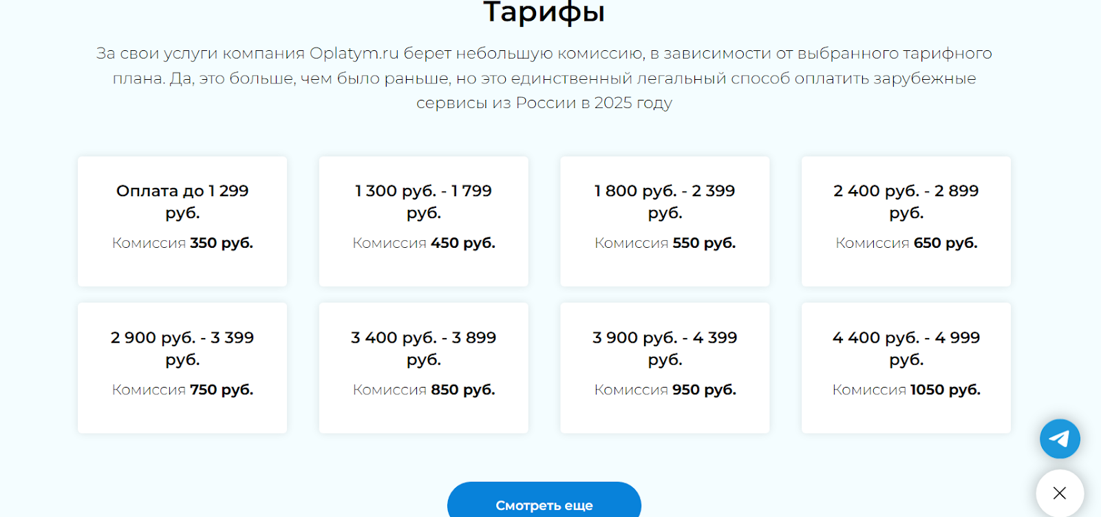 Пользователям предложены такие тарифные планы по комиссиям за проведенные зарубежные платежи:
