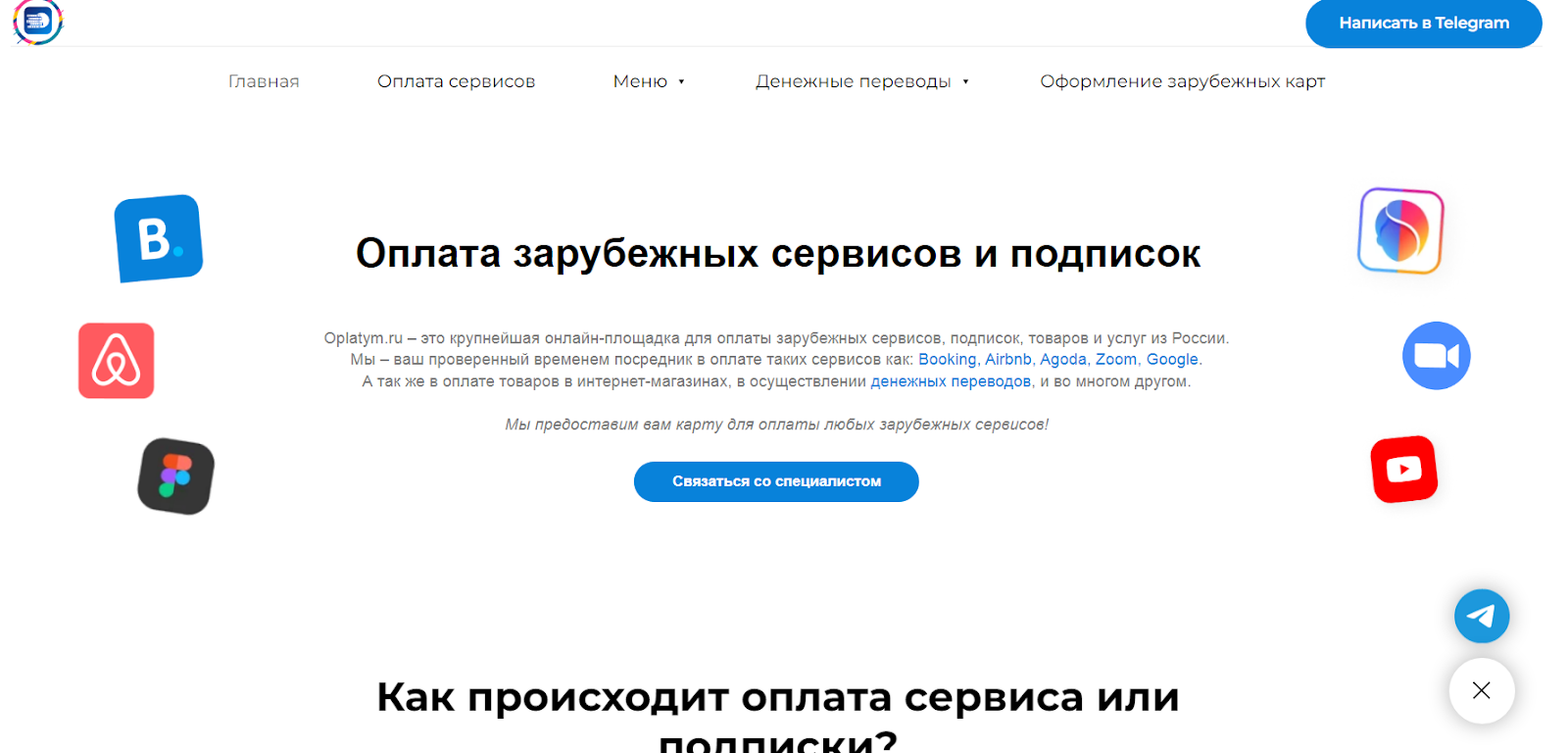 Проект предоставляет услуги компаниям в области оптовой торговли, логистики, IT, а еще обслуживает частные лица (инвесторов, фрилансеров, риелторов и других). Доступны переводы в такие страны, как: Австрия, Германия, Китай, ОАЭ, Корея и прочие. С помощью сервиса можно оплатить: услуги Zoom, Spotify, Google Play и так далее. Процесс оплаты происходит таким методом: