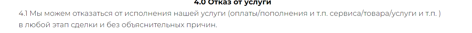 Как обозначено, сервис принадлежит компании SOFTBOOTH LTD, которая зарегистрирована в Англии. Она работает с лицензией, но связи с рассматриваемой платформой не подтверждала. Лицензии на деятельность в РФ у проекта нет. Исходя из размещенных условий работы, сервис Oplatym Exchange 20 имеет право в любой момент отказать в услуге без причин.