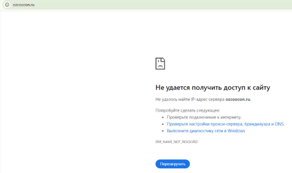 Самое интересное, что сайт Ozoconc ru на момент написания обзора (февраль 2026) оказался заблокирован. Причины блокировки не уточняются, социальных сетей у проекта не было, поэтому узнать более детально о его деятельности не представляется возможным.