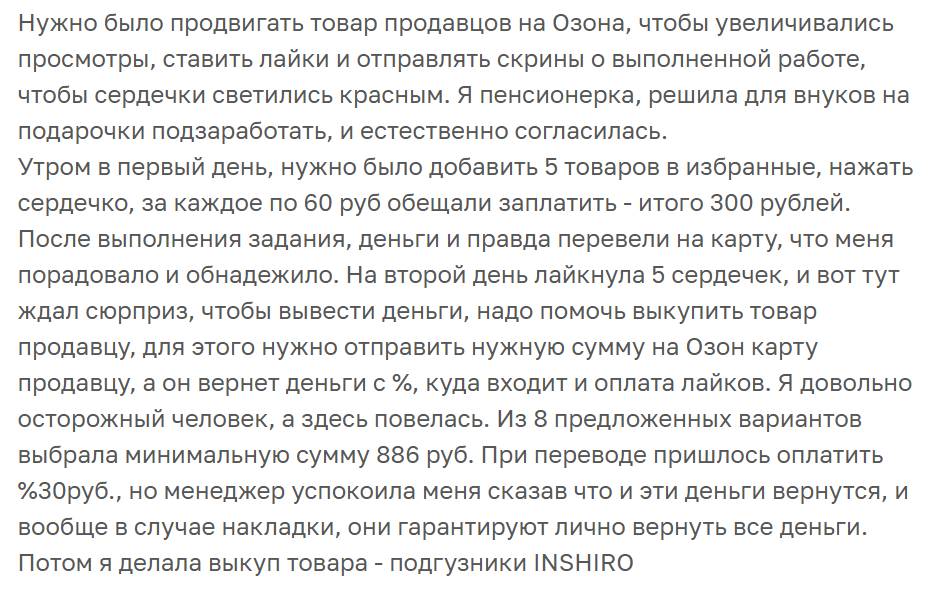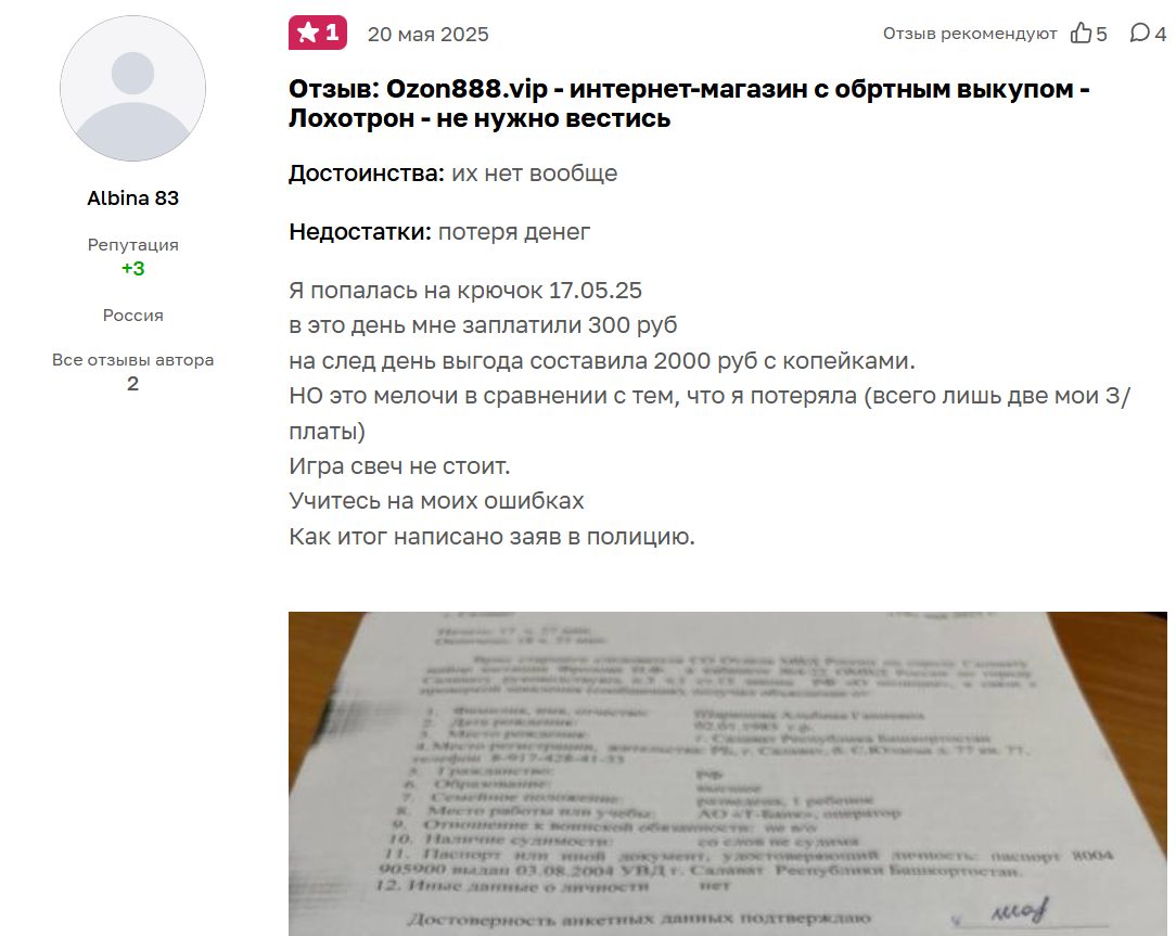 Опираясь на отзывы работников многочисленных площадок, схема Ozonyears0218 com работает без перерывов и выходных – новые сайты штампуются постоянно. Жулики активно используют психологическое давление. К примеру, утверждают, что задание нужно выполнить быстро – в ином случае прибыль может ускользнуть. Посетители подобных сайтов должны помнить, что легальные компании никогда не потребуют перевода средств для сотрудничества. Компания Ozon не рассылает предложение о таком заработке в личные сообщения.