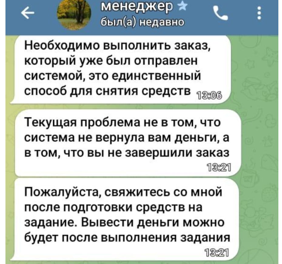 Когда пользователи хотят получить заработок, то им обещают, что средства можно снять только после выполнения заказа. Перед “закрытием заказа”, согласно системе работы, нужно подготовить средства на задание, т.е. сначала отдать свои деньги.