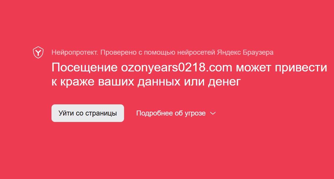 Яндекс браузер сообщает, что посещение ресурса может привести к краже денег или данных пользователя. Из открытых источников известно, что соискателям предлагали выполнять “простые задания”. Пользователь должен был переводить свои средства для заказа товаров, тем самым якобы повышая рейтинг магазина. Дальнейшая схема предполагала возврат не только потраченных средств, но и выплату определенной комиссии. Однако данная система заработка от Ozonyears0218 com – лишь теория.