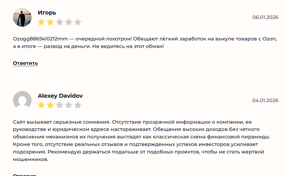 Отзывы про Ozonyears0218 немногочисленные, включая негативные оценки от аналитиков. Также у шарашки есть масса дубликатов – за этими площадками тянется череда обманутых пользователей. В негативных комментариях работники отмечают – обещанный легкий заработок превращается в развод на деньги.