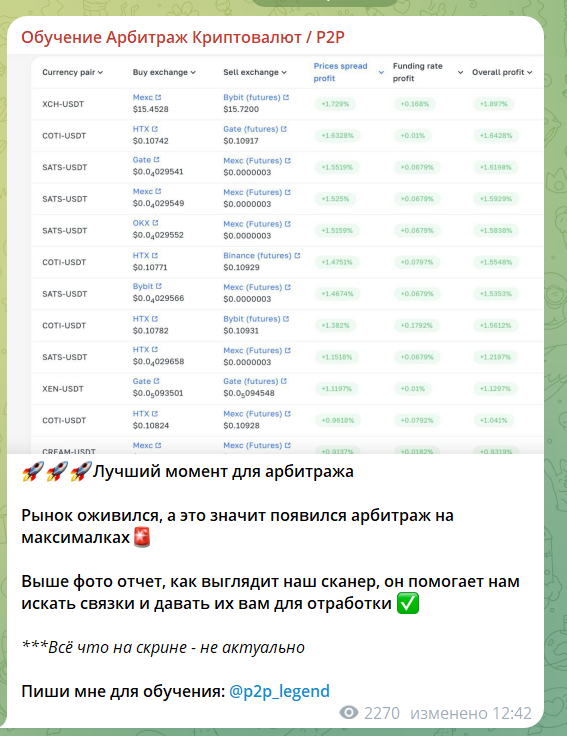 Основа проекта — бесплатное обучение арбитражным стратегиям. По заявлениям автора, ученики могут начать зарабатывать за пару дней, используя «рабочие связки». Парадокс в том, что для «бесплатного» обучения требуется регистрация на бирже и создание криптокошелька. При этом в материалах P2P Legend встречаются противоречия: сначала говорится о старте без вложений, но позже упоминается необходимость пополнения счета для тестирования стратегий.