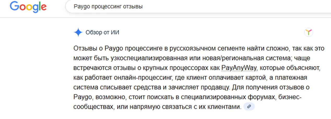 Если верить обзору от ИИ, то данной платформой процессинга в России практически никто не пользуется. Обзоров от экспертов на Pay go тоже нет.