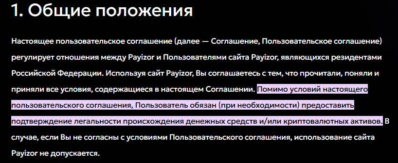 Лицензий на работу в РФ у Payizor нет. Это полностью серый обменник, с которым можно работать только на свой страх и риск. Даже среди сомнительных компаний он выделяется полным отсутствием информации.