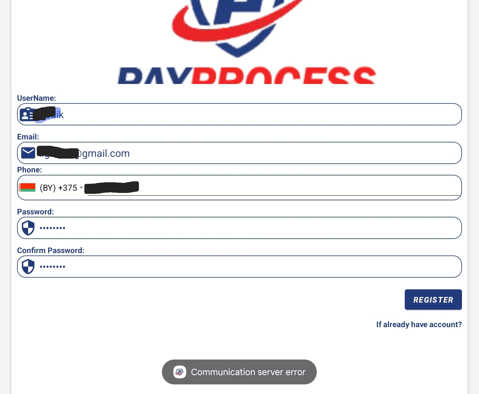 - Невозможность зарегистрироваться из-за ошибки сервера связи;